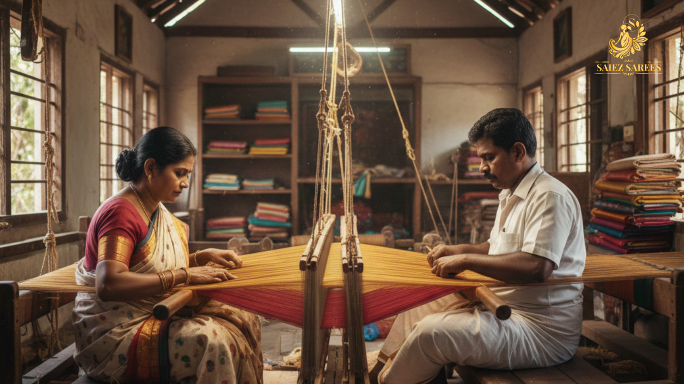 Every saree whispers the story of centuries-old craftsmanship.