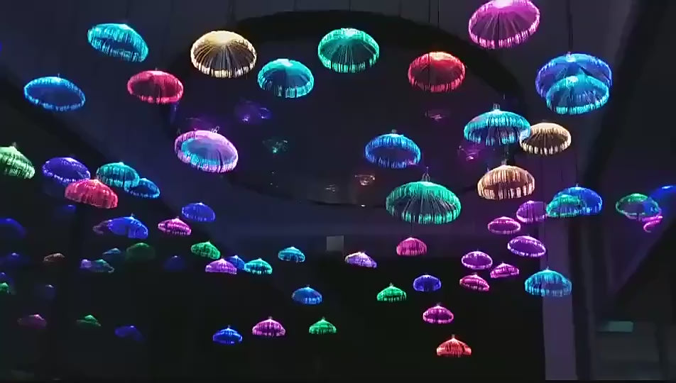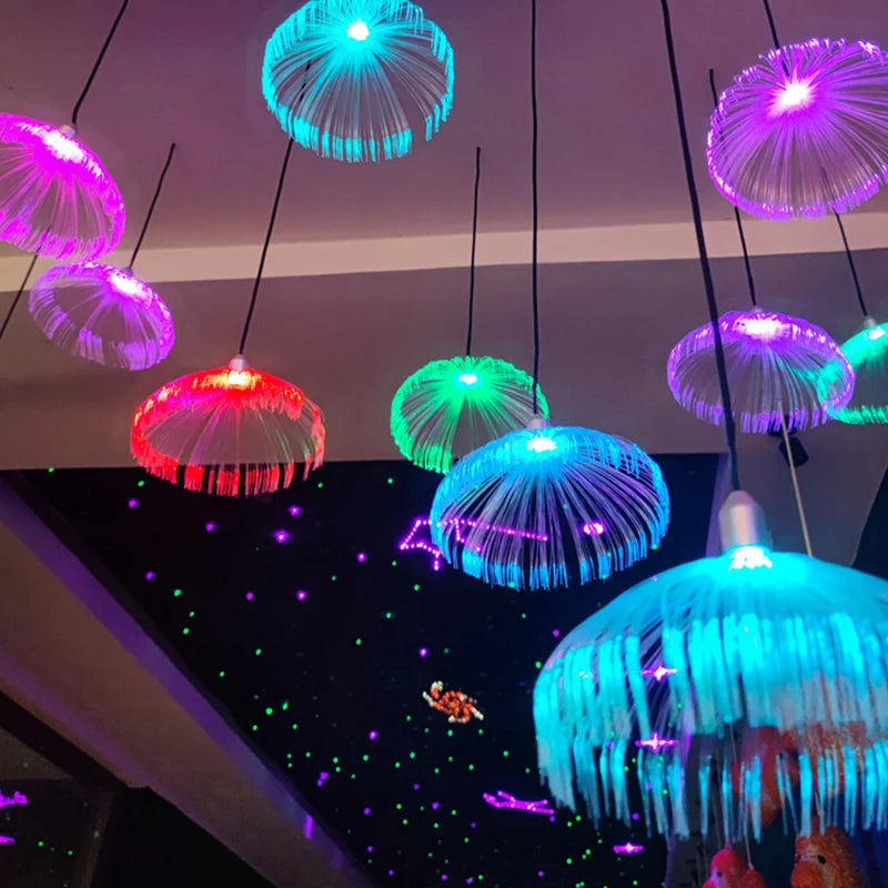 RGB Colorful Jellyfish Led Fiber Optic Light DIY Christmas Chandelier Multi Color Landscape Atmosphere Garden Courtyard Lights
